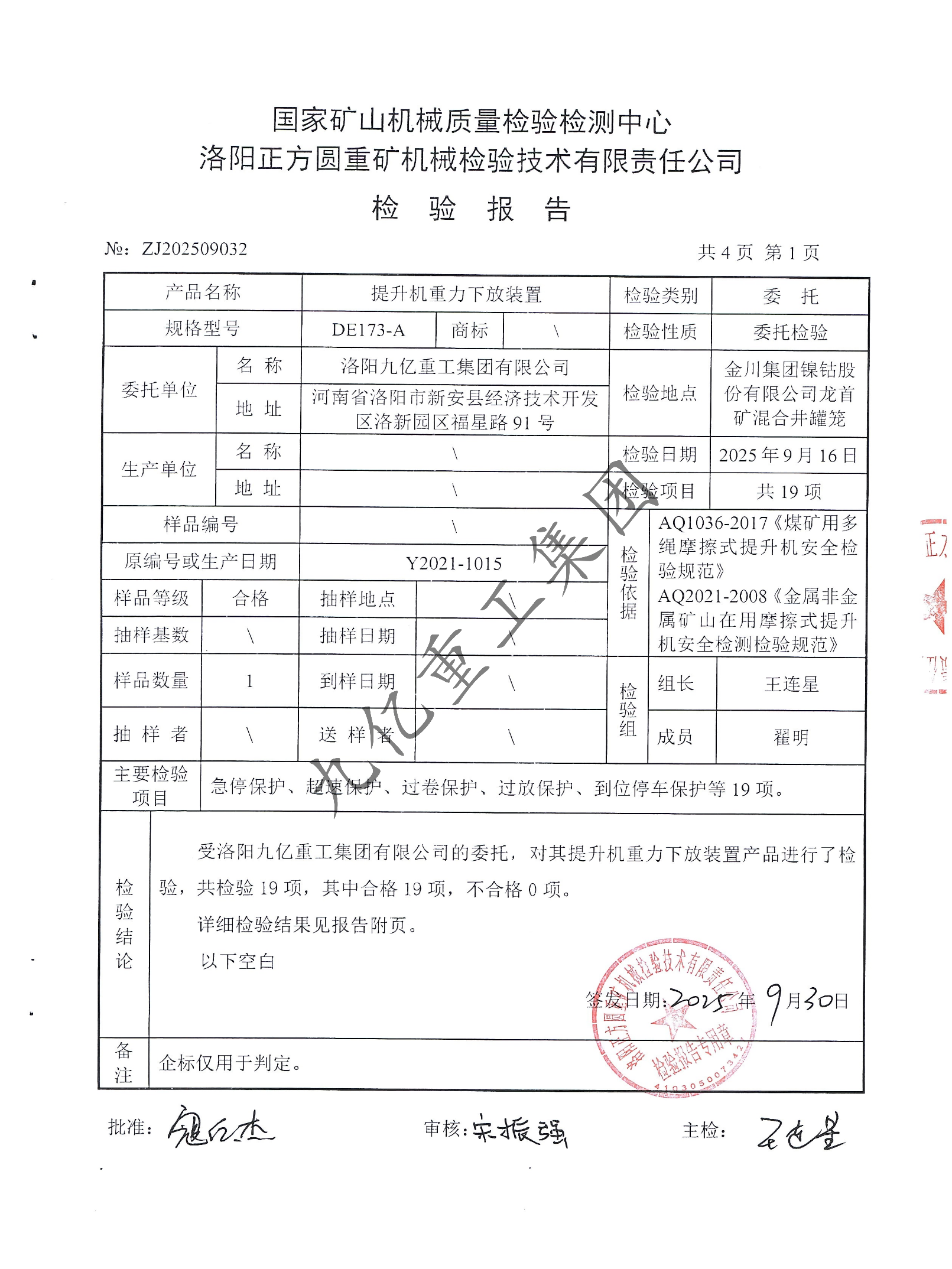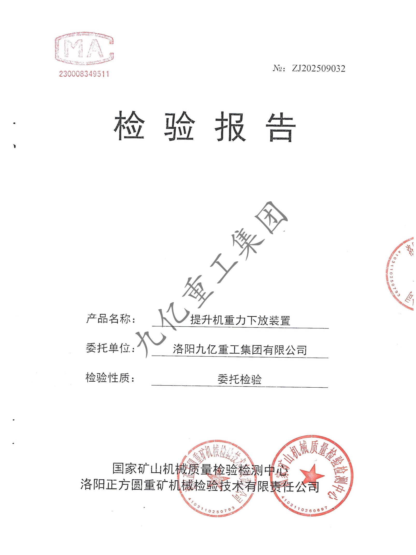 提升機(jī)重力下放裝置檢驗(yàn)報(bào)告