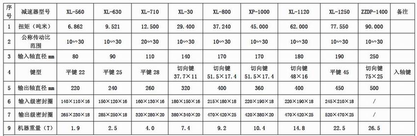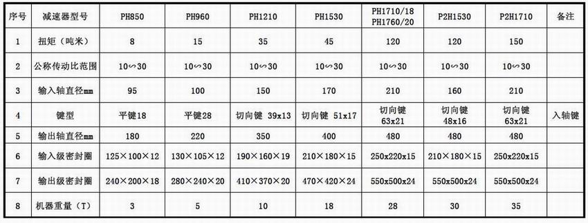 平行軸硬齒面齒輪減速器技術(shù)參數(shù)表